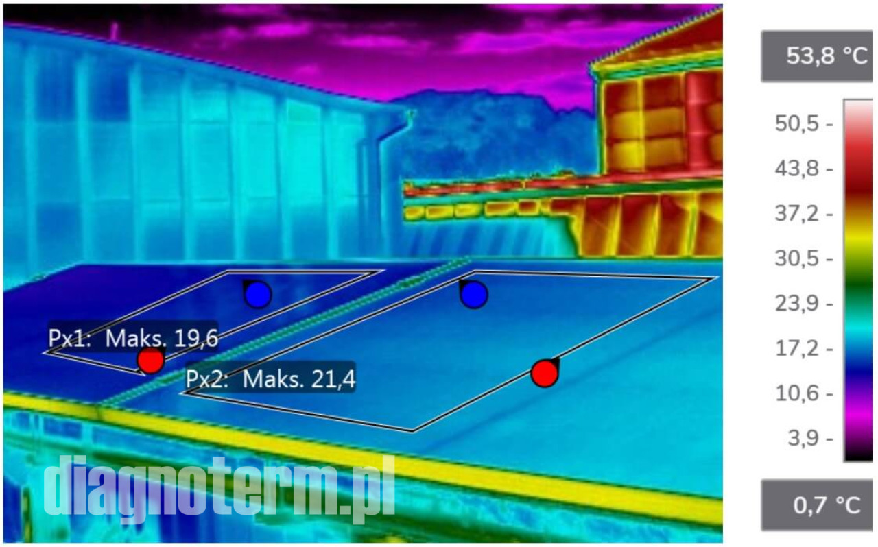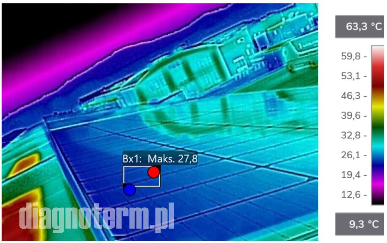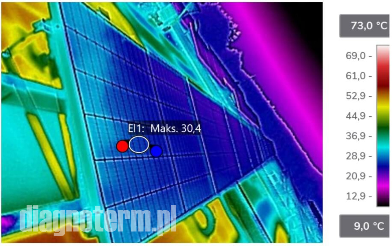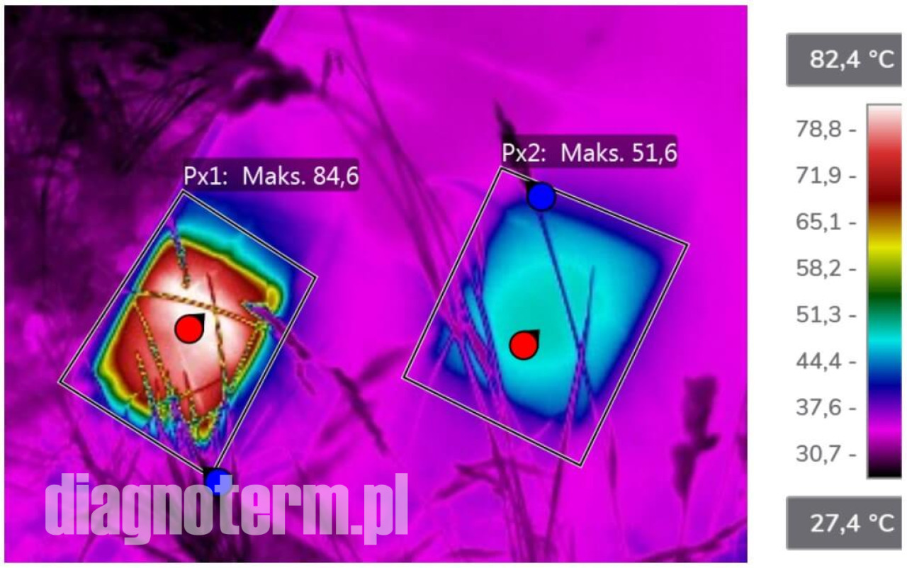 Farmy fotowoltaiczne niezależnie od ich wielkości i miejsca zainstalowania narażone są na różnego rodzaju uszkodzenia. Mogą być one wywołane intensywnym gradobiciem, silnymi podmuchami wiatru, nieprawidłowym obchodzeniem się z urządzeniem ale mogą mieć też ukrytą wadą fabryczną. Normalnym zjawiskiem jest, że pracujący panel nagrzewa się do temperatury kilkudziesięciu stopni Celsiusa. Jednak większym niebezpieczeństwem są tzw. HOT SPOT-y – miejscowe przegrzania paneli. Ich długotrwałe działanie może spowodować fizyczne uszkodzenie ogniwa a w skrajnych wypadkach pożar instalacji. Zgodnie z normą PN-EN 62446-1 instalacje fotowoltaiczne można monitorować przy użyciu kamery termograficznej.
