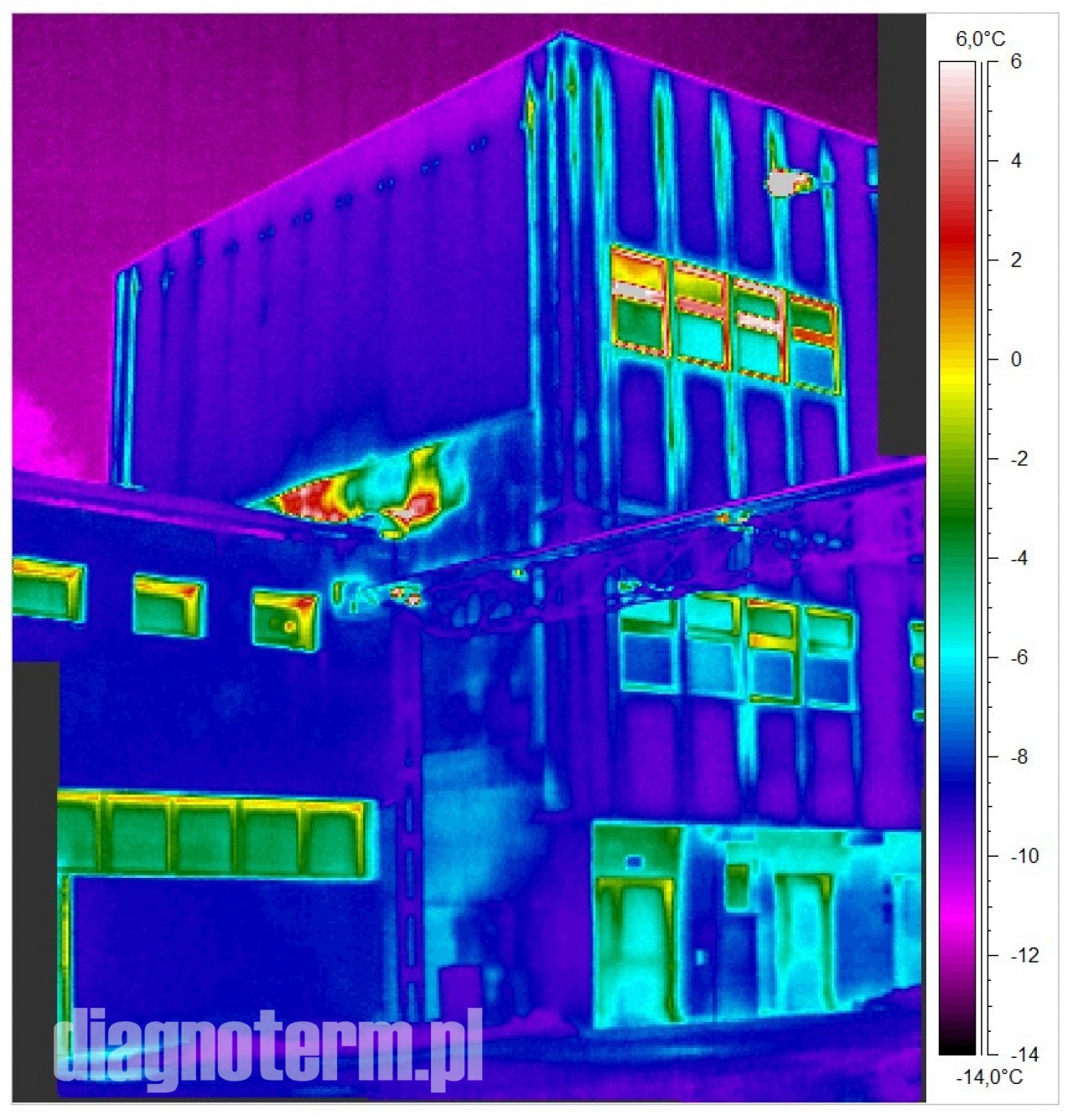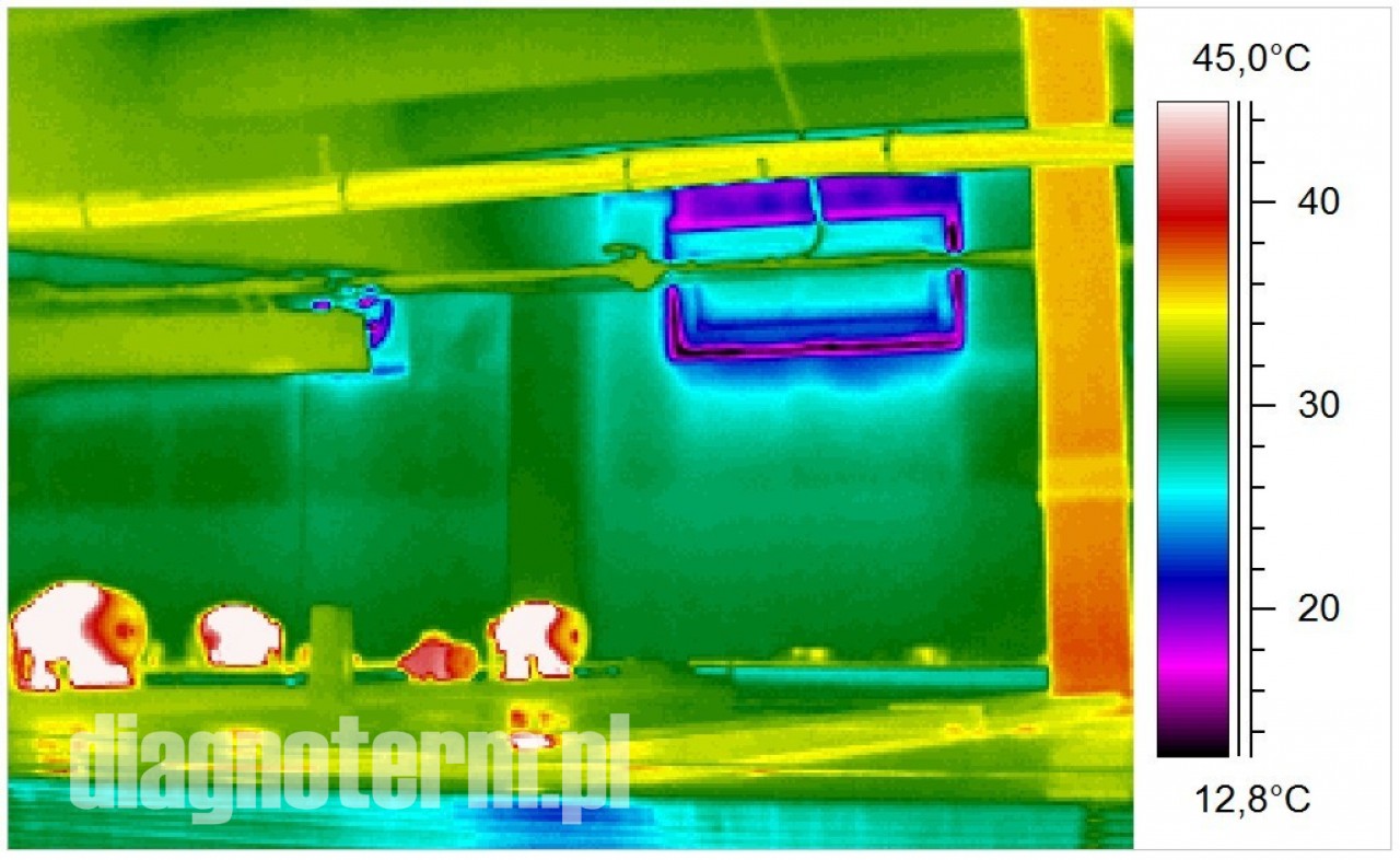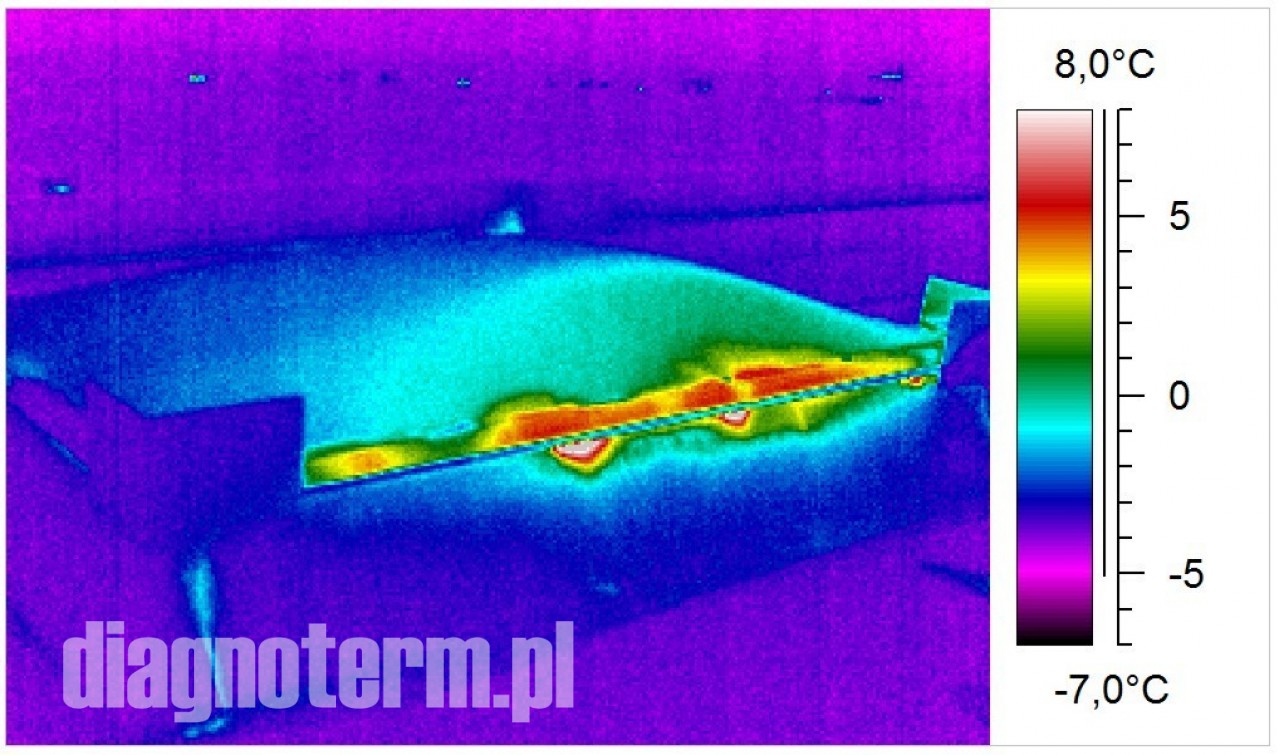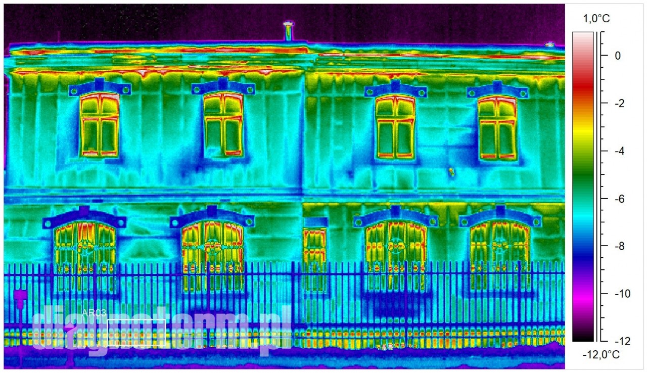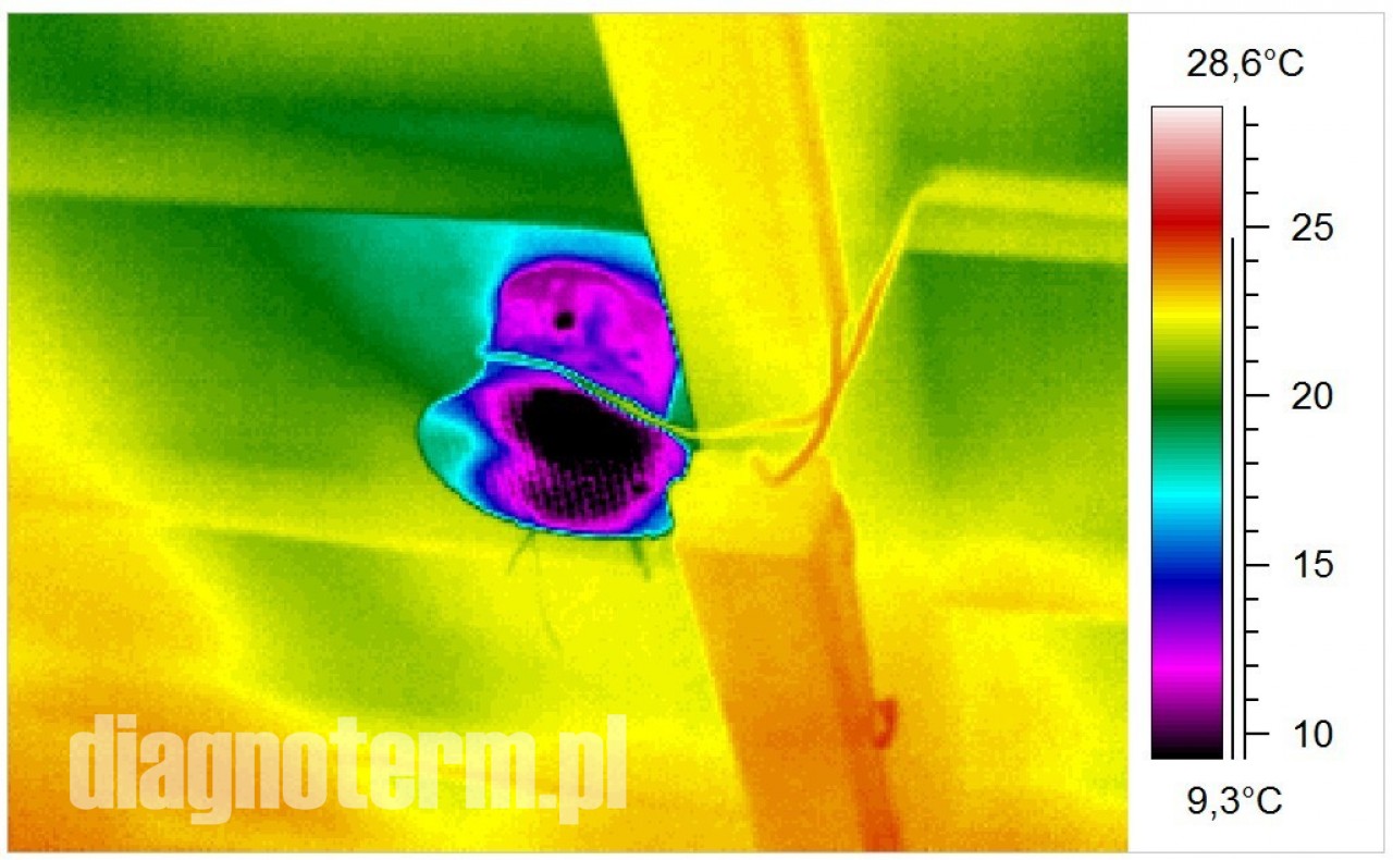 Pogorszenie termoizolacji hal i budynków powoduje nie tylko podwyższenie kosztów ich utrzymania i pogorszenie komfortu pracy załogi ale również po przekroczeniu pewnej granicy wykraplanie się pary wodnej. Jeżeli taki stan utrzymuje się odpowiednio długo to może dojść do zagrzybienia. Kamera termowizyjna pozwala bardzo precyzyjnie znaleźć takie punkty na powierzchni ścian i dachów.