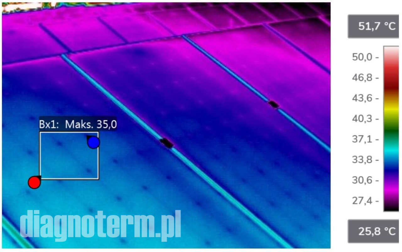 Farmy fotowoltaiczne niezależnie od ich wielkości i miejsca zainstalowania narażone są na różnego rodzaju uszkodzenia. Mogą być one wywołane intensywnym gradobiciem, silnymi podmuchami wiatru, nieprawidłowym obchodzeniem się z urządzeniem ale mogą mieć też ukrytą wadą fabryczną. Normalnym zjawiskiem jest, że pracujący panel nagrzewa się do temperatury kilkudziesięciu stopni Celsiusa. Jednak większym niebezpieczeństwem są tzw. HOT SPOT-y – miejscowe przegrzania paneli. Ich długotrwałe działanie może spowodować fizyczne uszkodzenie ogniwa a w skrajnych wypadkach pożar instalacji. Zgodnie z normą PN-EN 62446-1 instalacje fotowoltaiczne można monitorować przy użyciu kamery termograficznej.