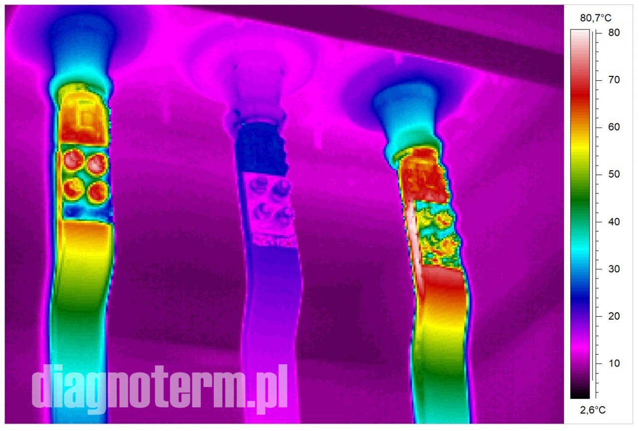 Aparatura rozdzielcza pracująca w bardzo różnych warunkach obciążenia, temperatury zewnętrznej, wilgotności oraz zapylenia. Wszelkie połączenia należy regularnie monitorować i na bieżąco usuwać powstałe nieprawidłowości. Raporty termograficzne wskazują bardzo precyzyjnie słabe punkty w poszczególnych polach rozdzielczych więc nie ma potrzeby wyłączania całych rozdzielni na potrzeby przeglądów elektrycznych, metoda termograficzna minimalizuje straty zakładów spowodowane niepotrzebnymi przestojami profilaktycznymi bądź też awaryjnymi.